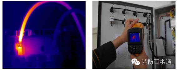 紅外熱像儀是利用紅外探測(cè)器和光學(xué)成像物鏡接受被測(cè)目標(biāo)的紅外輻射能量分布圖形反映到紅外探測(cè)器的光敏元件上,從而獲得紅外熱像圖,這種熱像圖與物體表面的熱分布場(chǎng)相對(duì)應(yīng),圖35。通俗地講紅外熱像儀就是將物體發(fā)出的不可見(jiàn)紅外能量轉(zhuǎn)變?yōu)榭梢?jiàn)的熱圖像。熱圖像的上面的不同顏色代表被測(cè)物體的不同溫度。在消防監(jiān)督檢查工作中一般用于測(cè)量電氣火災(zāi)隱患。